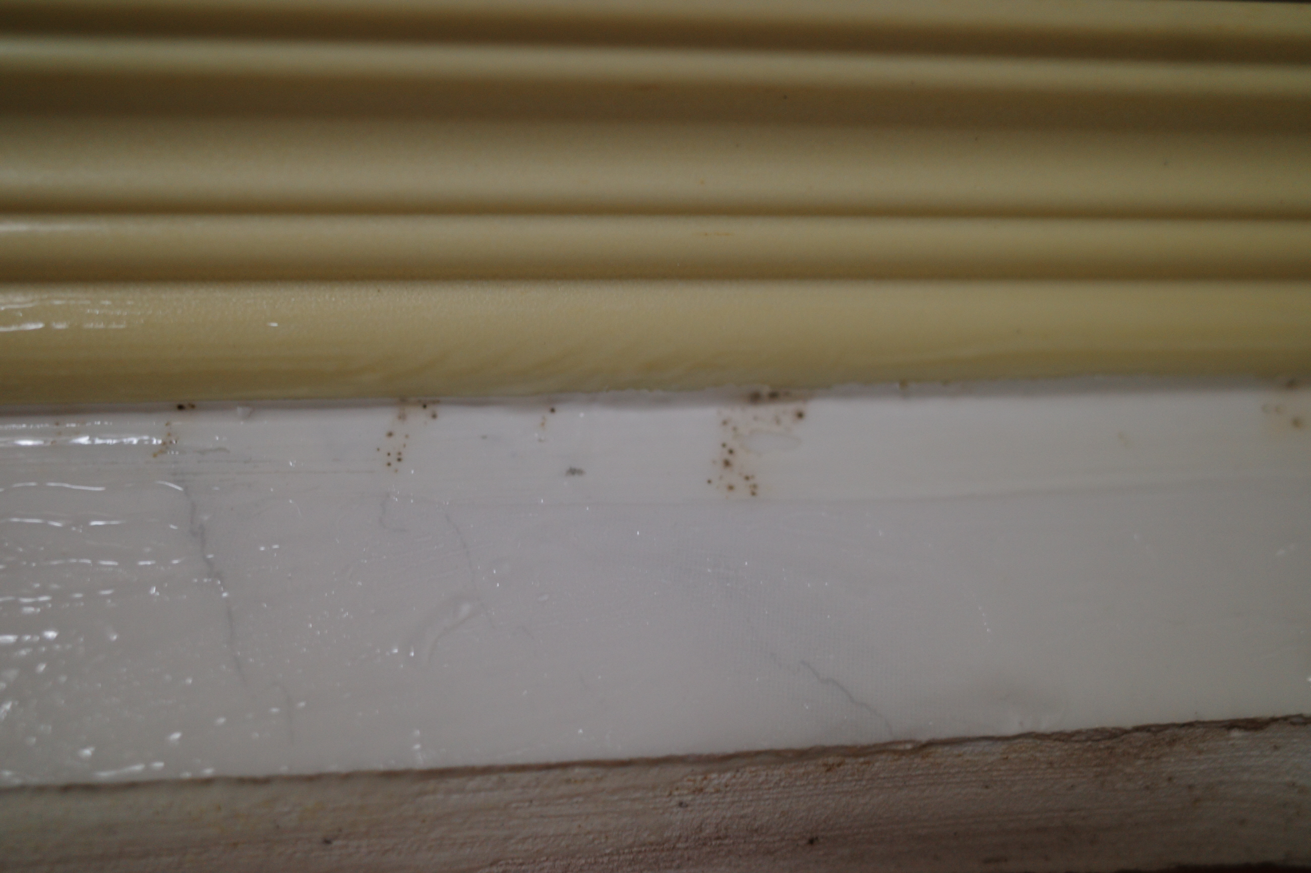 중간중간 하얗게 청소된 것이 락스가 묻은 부분입니다. 뿌리고나면 곰팡이가 있는 곳은 금세 하얗게 청소가 됩니다.
