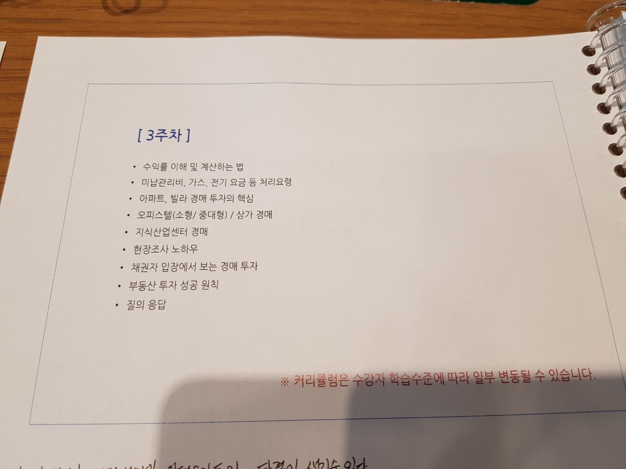 꽤 깔끔한 강의실에 모습이 마음에 듭니다. 강의교재도 상당히 말끔히 제본되어 있구요