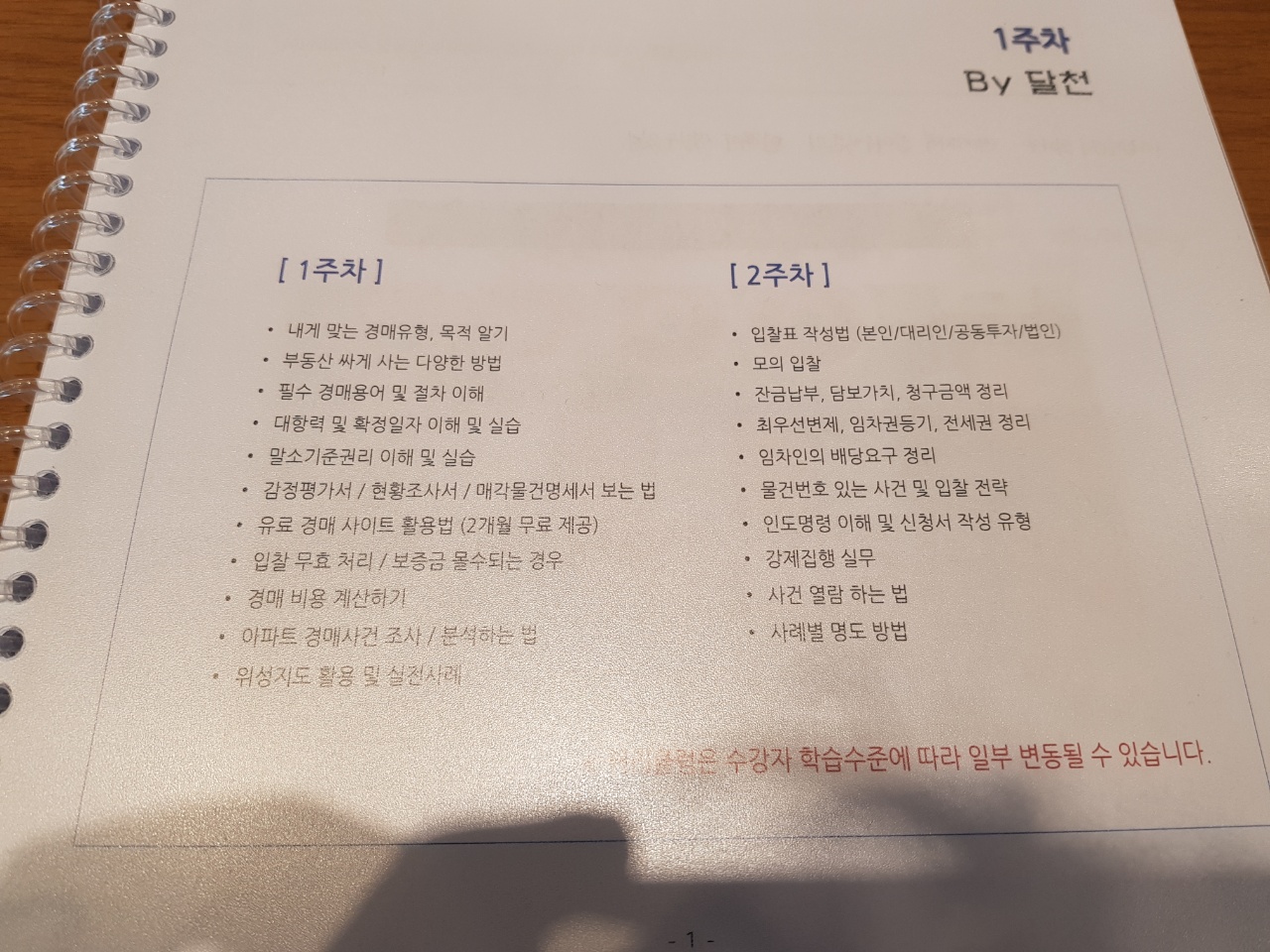 월급쟁이부자들 학원 _ 경매강의 (달천) 수강