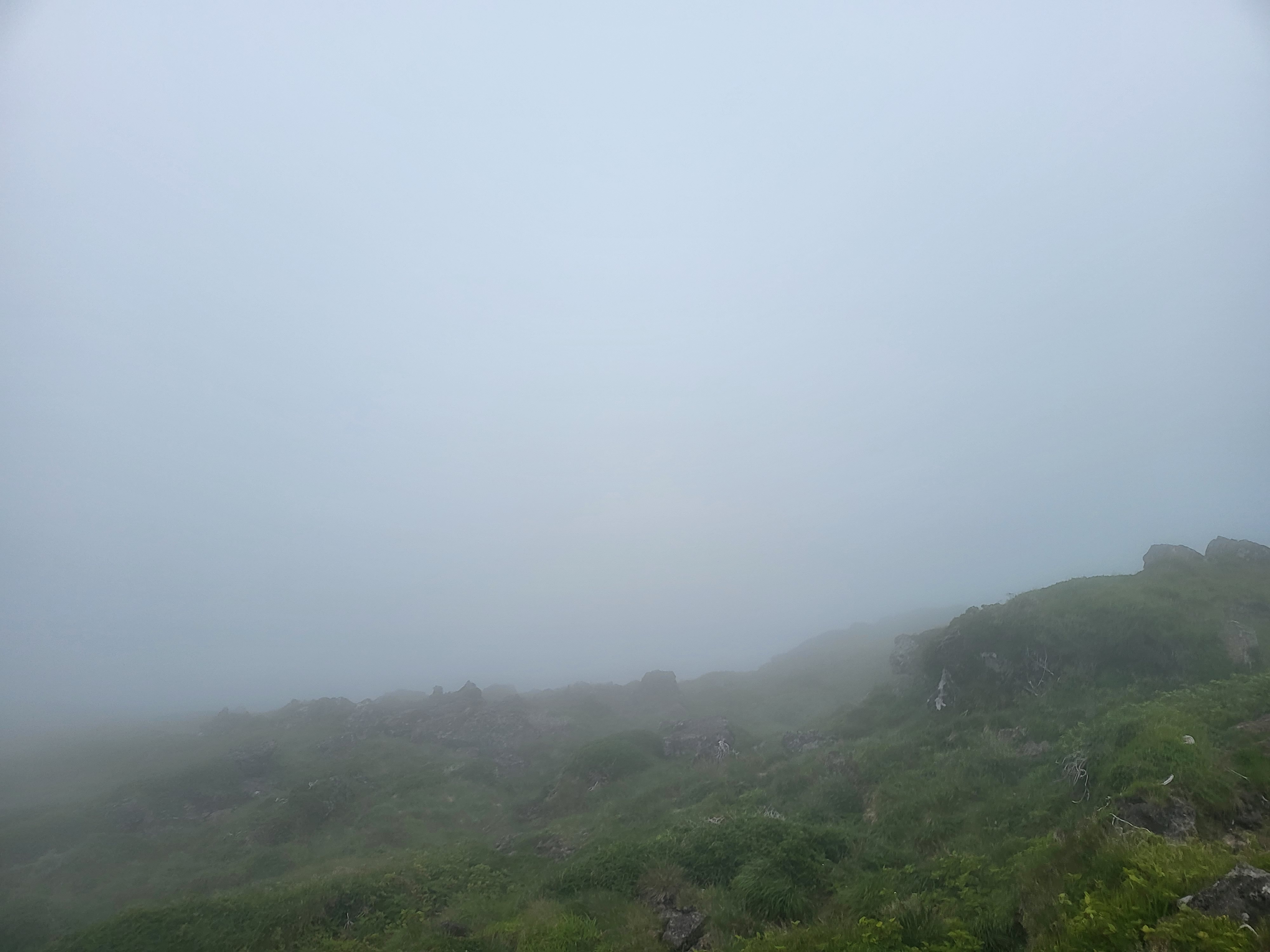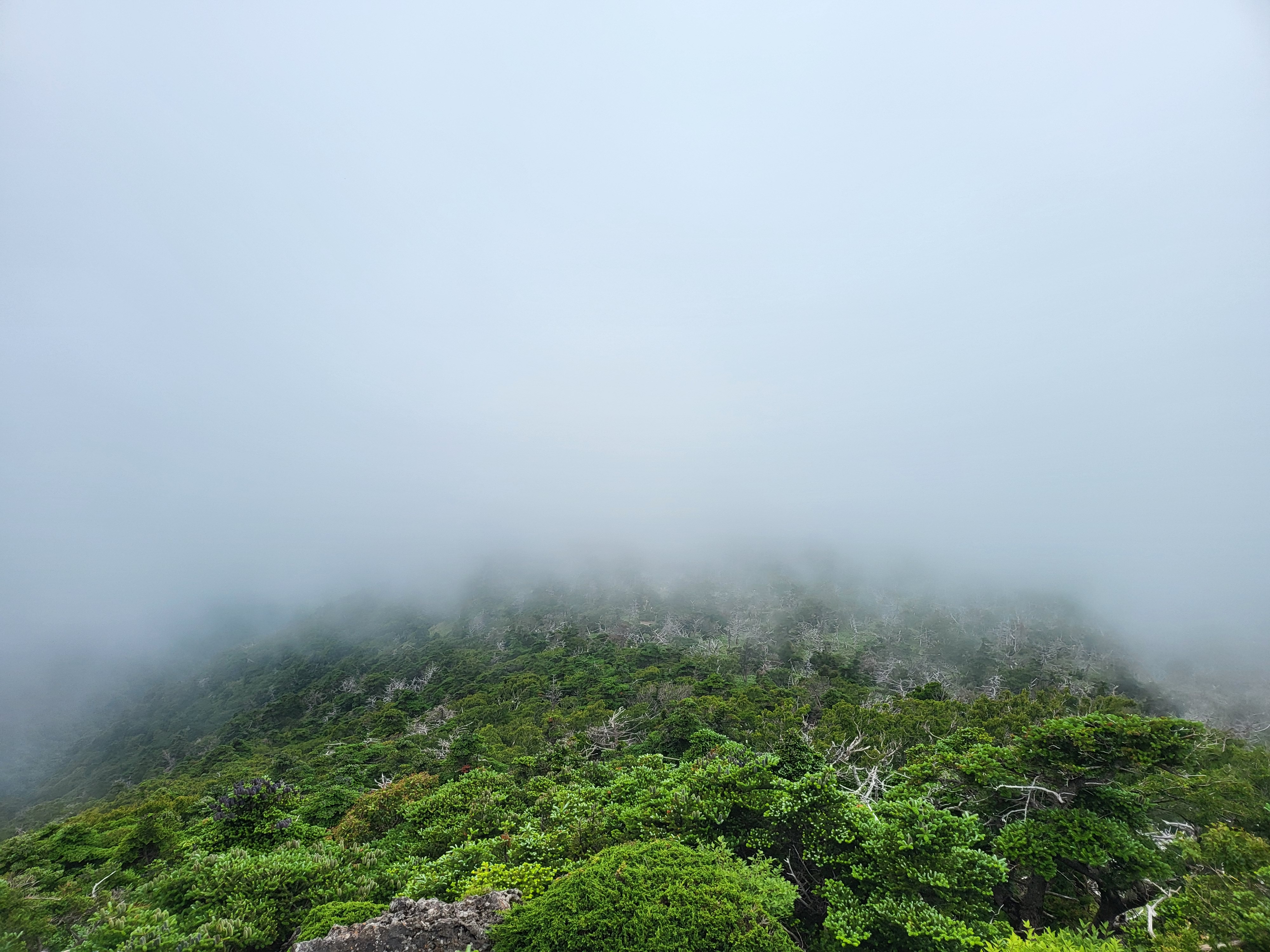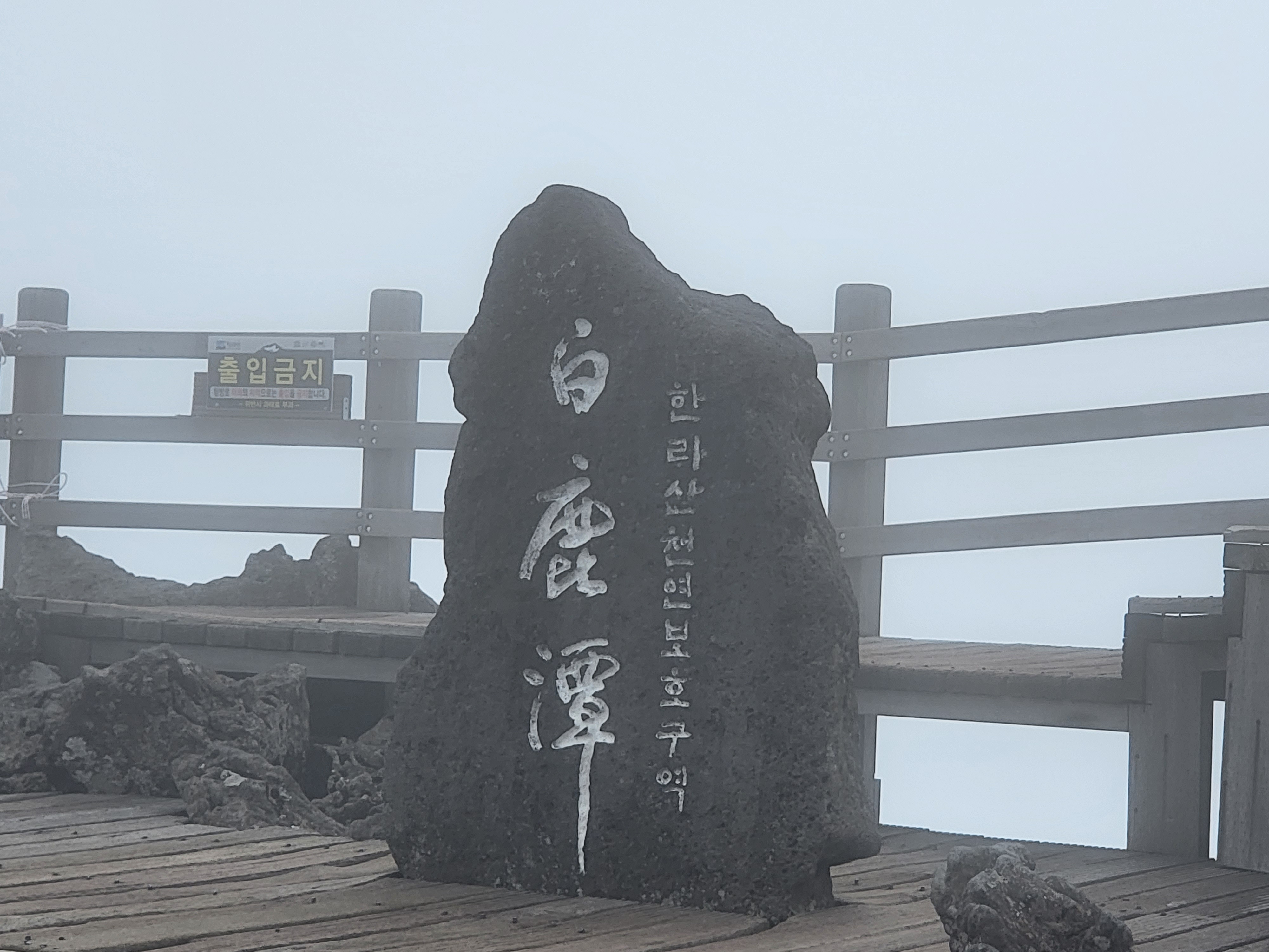 정상에 오른 사람들이 모두 인증샷을 찍으려고 줄을 길게 서서 있었는데 실제로는 안개가 심해서 인증샷 제대로 찍은 분이 계실까 싶었습니다.