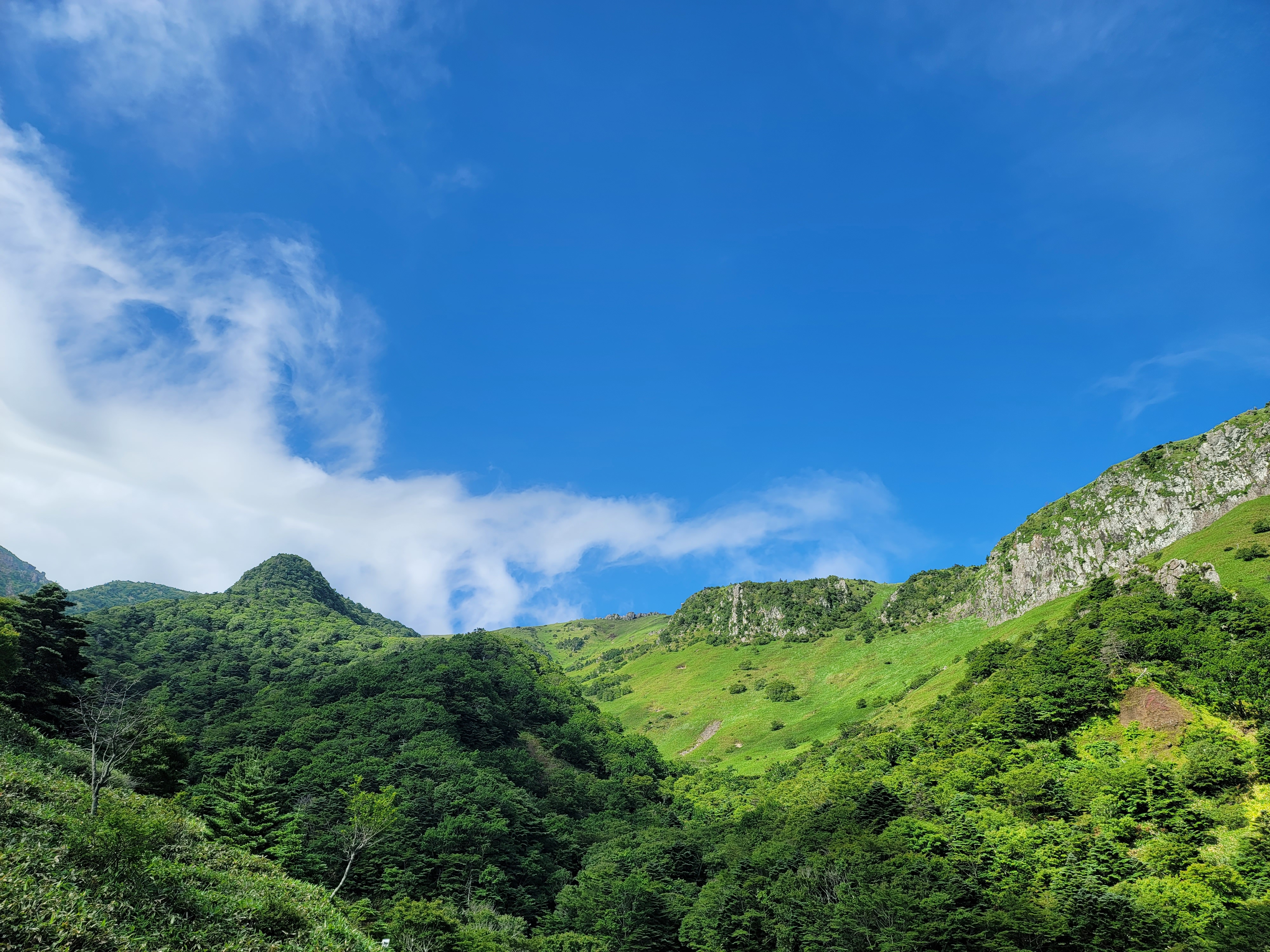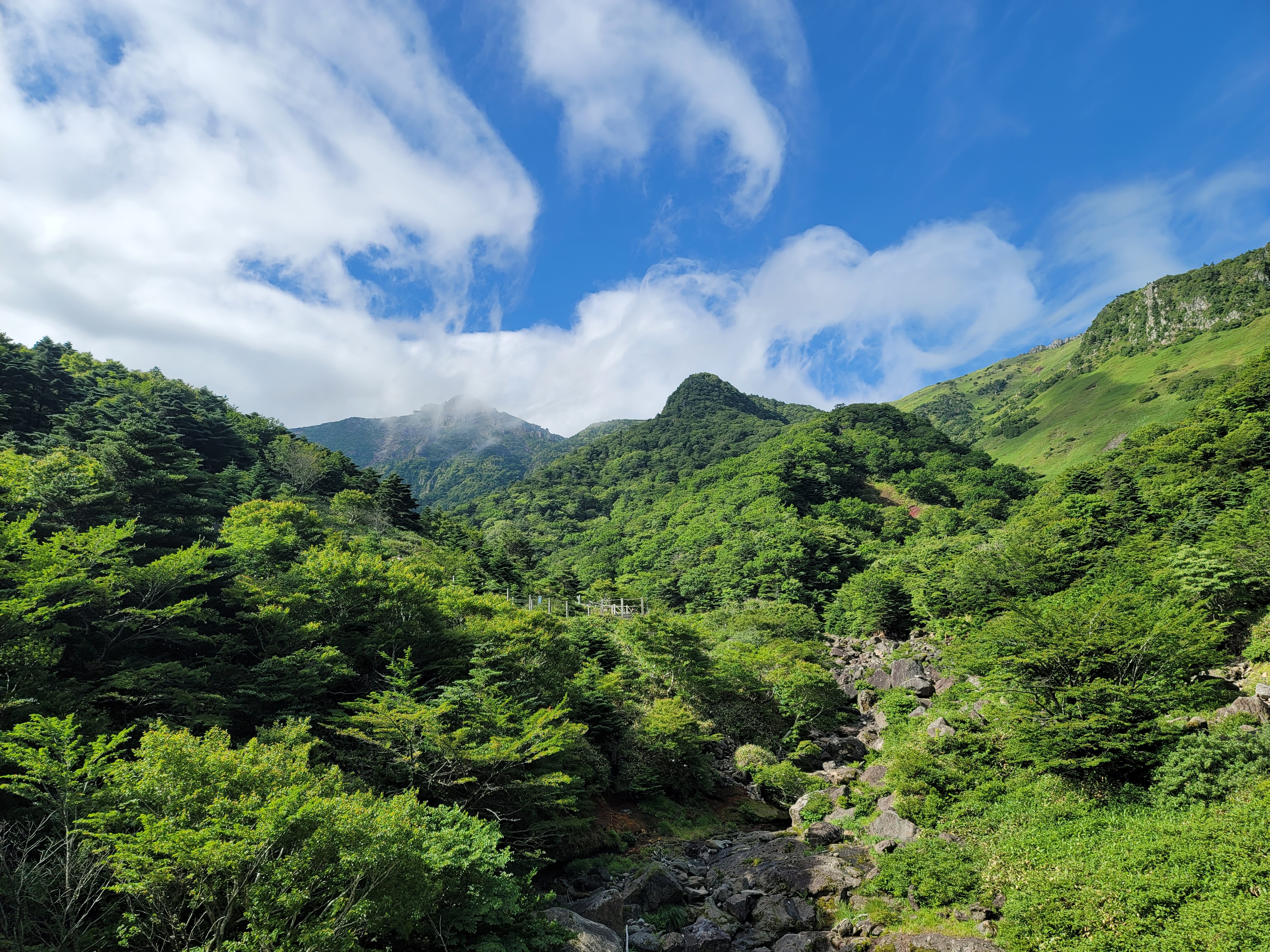 코스는 관음사 코스로 정했습니다. 성판악이 올라가는길이 다소 지루하다는 이야기를 들어서 관음사 코스로 선택하게 되었습니다. 관음사 코스는 실제로 올라가는길이 탁 트이고 예뻐서 올라가는 내내 기분좋은 시간을 선사해주었습니다. 관음사 코스가 성판악에 비해 힘들고 가파르다고 하는데 성인남성이면 크게 무리 없이 갈 수 있는 수준이었습니다.