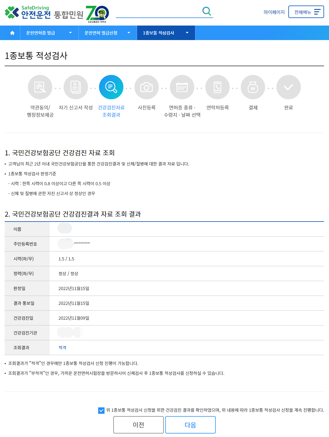 결제까지 완료하면 최종적으로 다음과 같은 1종보통 적성검사가 완료됩니다. 이제 신청날짜에 맞춰서 신청경찰서로 찾아가서 발급받으면 완료입니다.