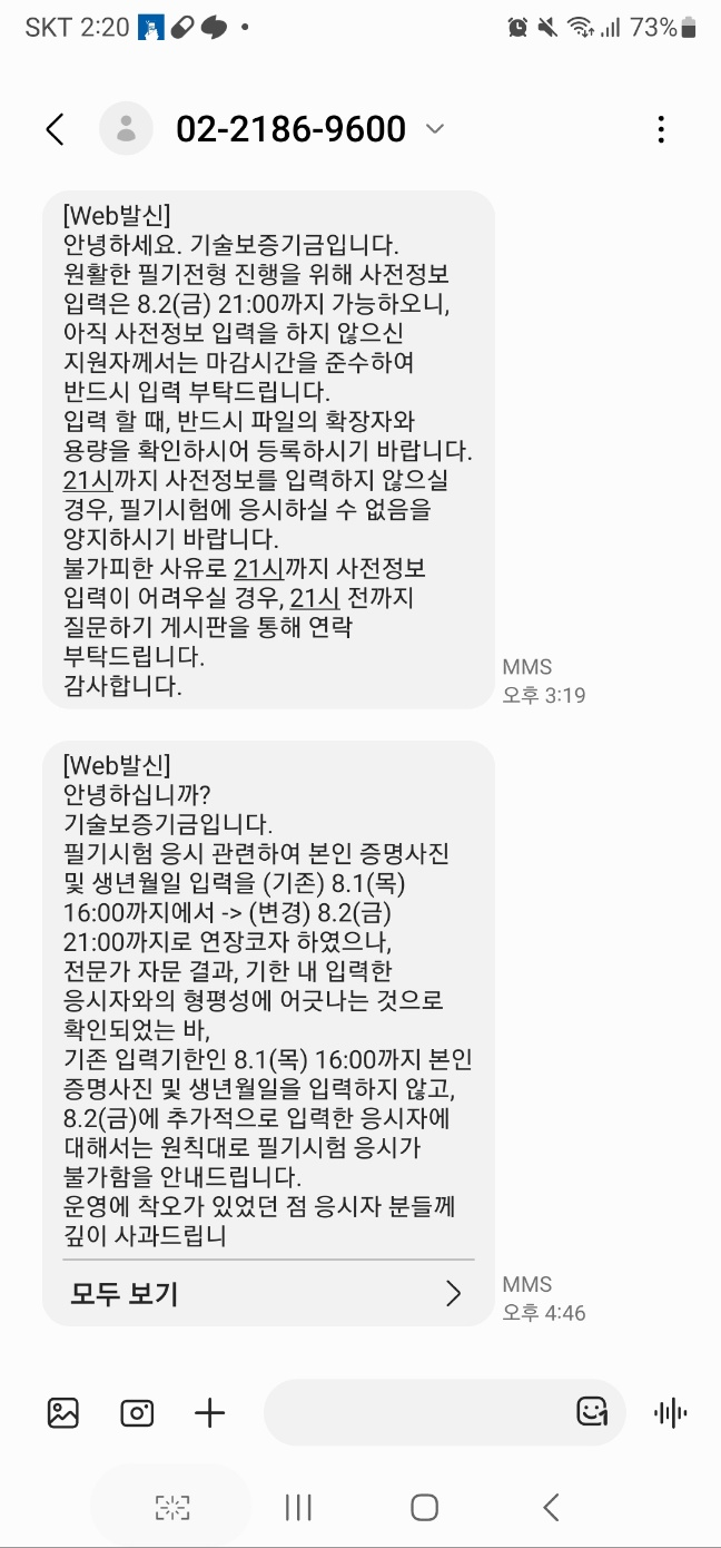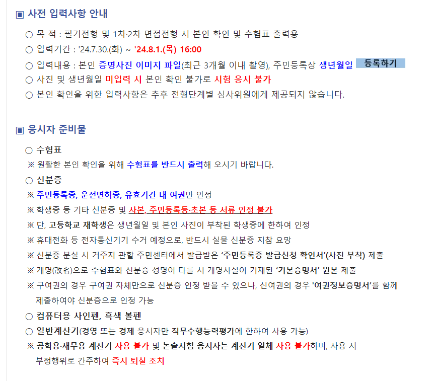 그런데 띠로리 무사히 서류합격을 해놓고서 일이 너무 바쁜관계로 사전입력사항이 있다는 것을 놓치고 사전입력기한이 지나고나서야 문자안내로 사전입력이 연장되었다는것을 확인했습니다. 그래서 어이쿠 큰일날뻔했다는 생각으로 사전입력으로 생년월일 및 증명사진을 부랴부랴 입력해서 넣었습니다.