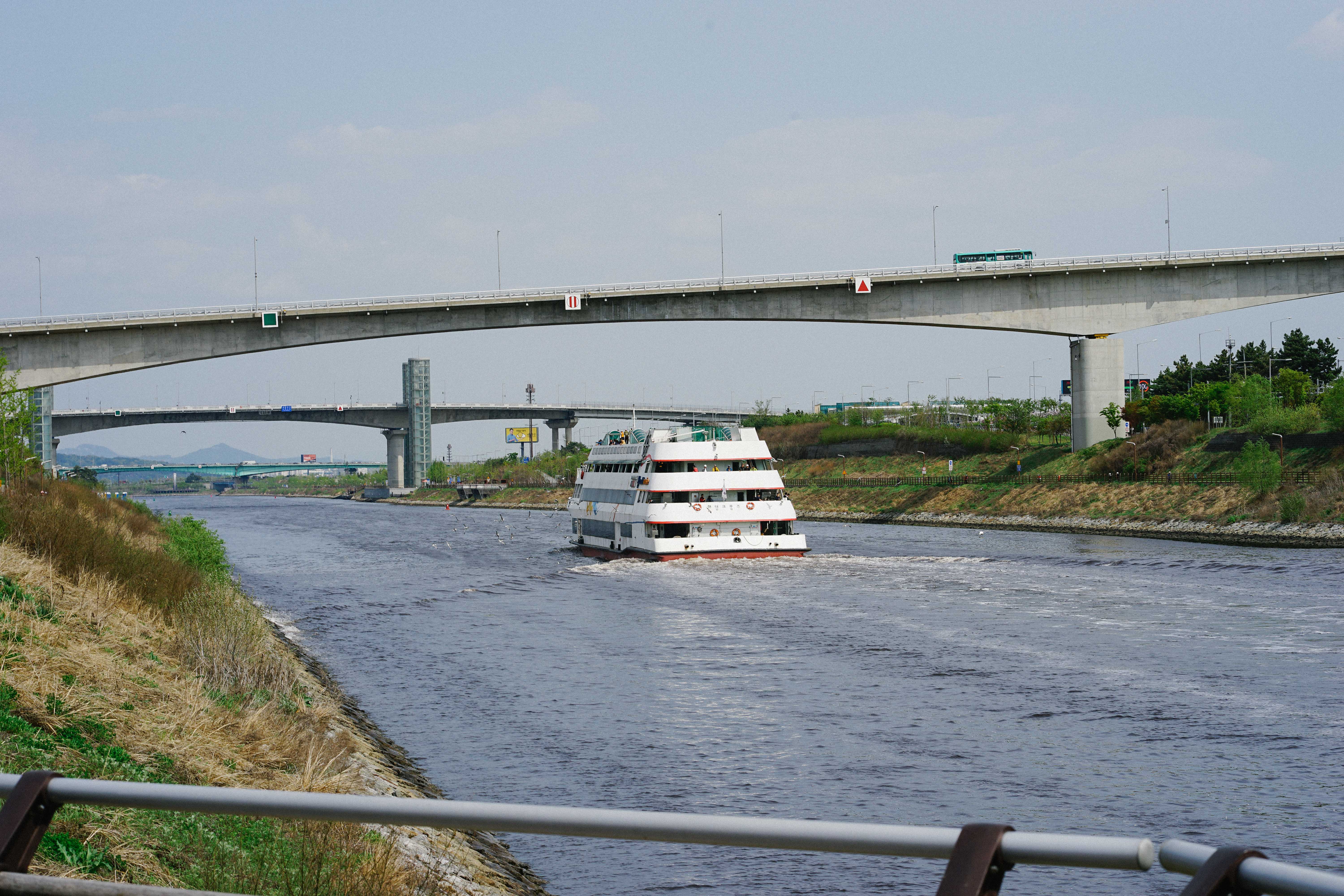 아라뱃길 보니까 유람선도 다니고 텐트를 쳐놓고 가족들과 휴식을 취하는 분들도 많이 보였습니다.