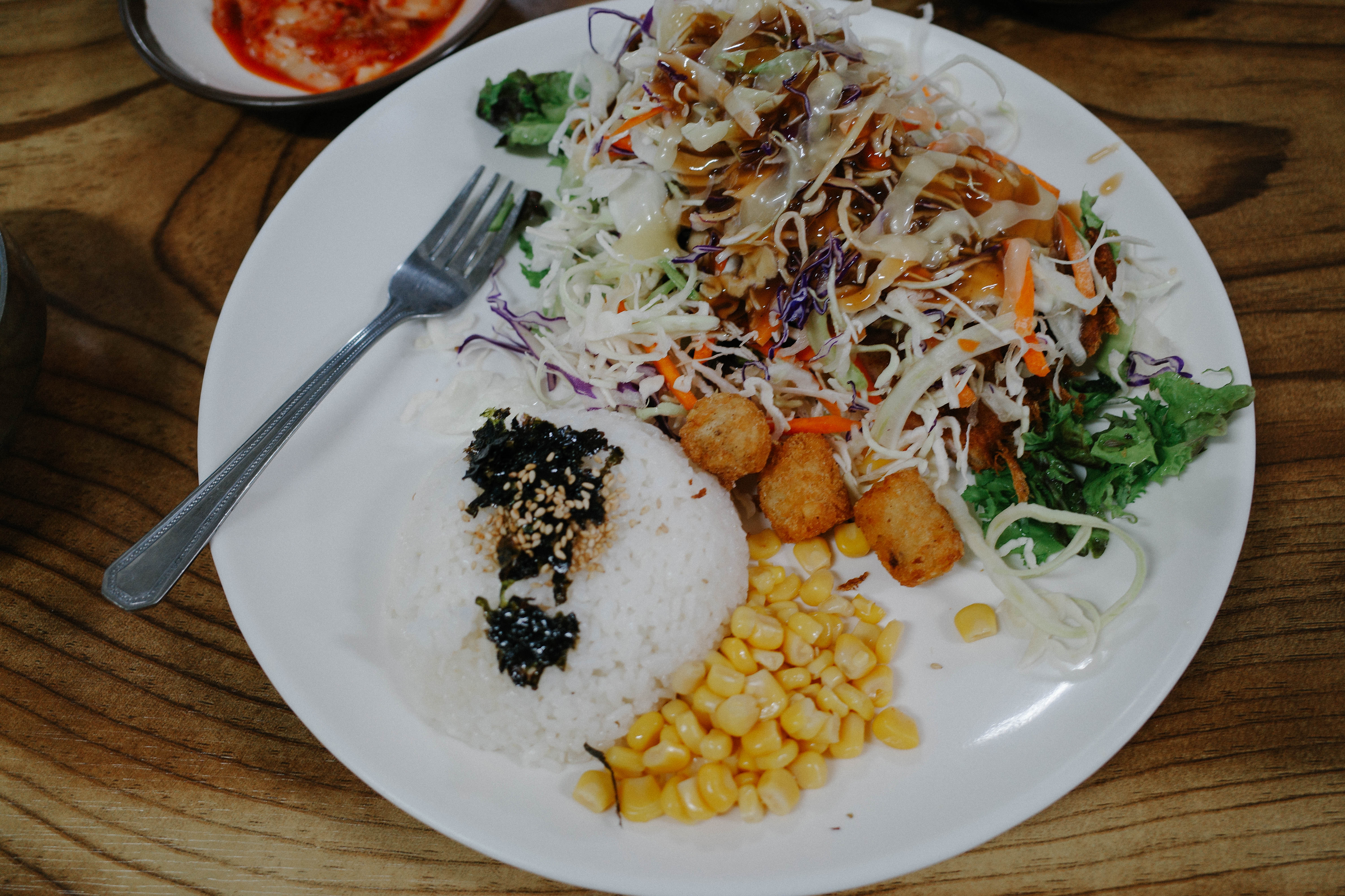 샐러드돈까스와 열무김치말이국수를 먹었습니다.