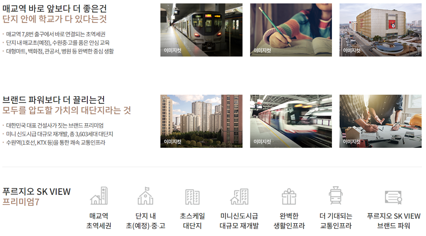학군을 품은 단지이기 때문입니다. 기존의 수원중, 수원고가 단지내에 있고 매교초등학교(가칭)가 예정되어 있습니다.