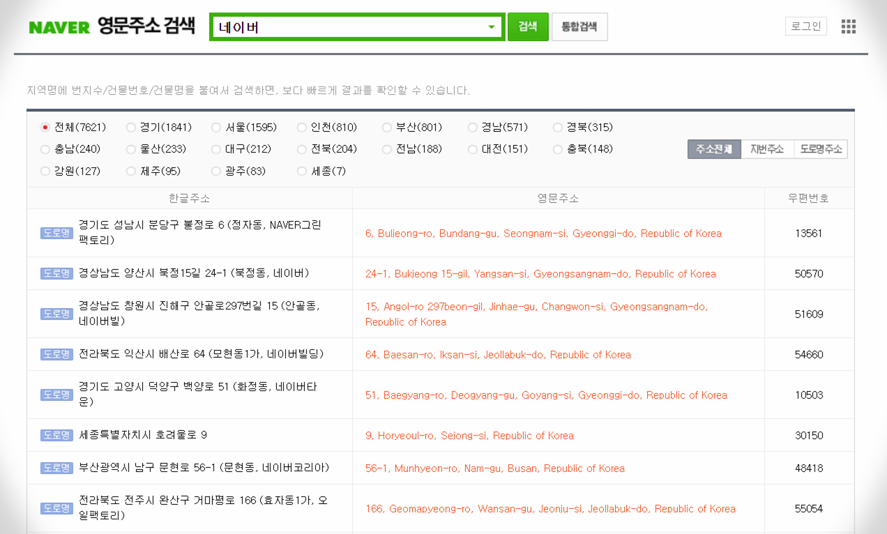 네이버 검색결과 : 네이버 영문주소 검색